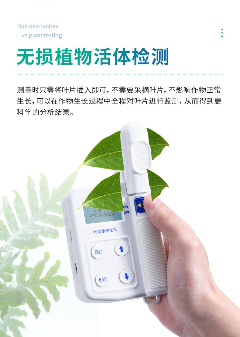1、快速无损植物活体检测,测量时只需将叶片插入即可,不需要采摘叶片,不影响作物正常生长,可以在作物生长过程中全程对叶片进行监测,从而得到更科学的分析结果