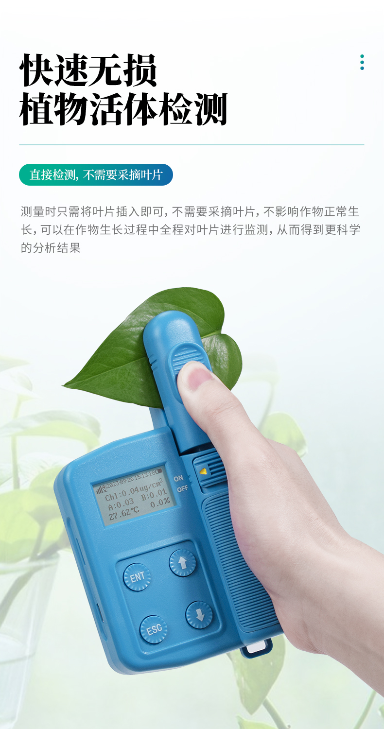 - 手持叶绿素测定仪:快速无损测量植物活体