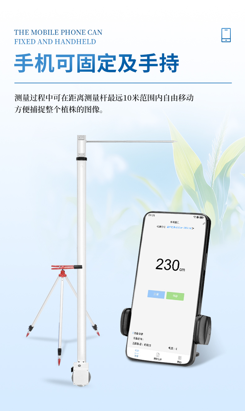 好盈v35.灵活性强 - 手机可以固定或者手持操作,测量过程中可在距离测量杆*远10米范围内自由移动,方便捕捉整个植株的图像。