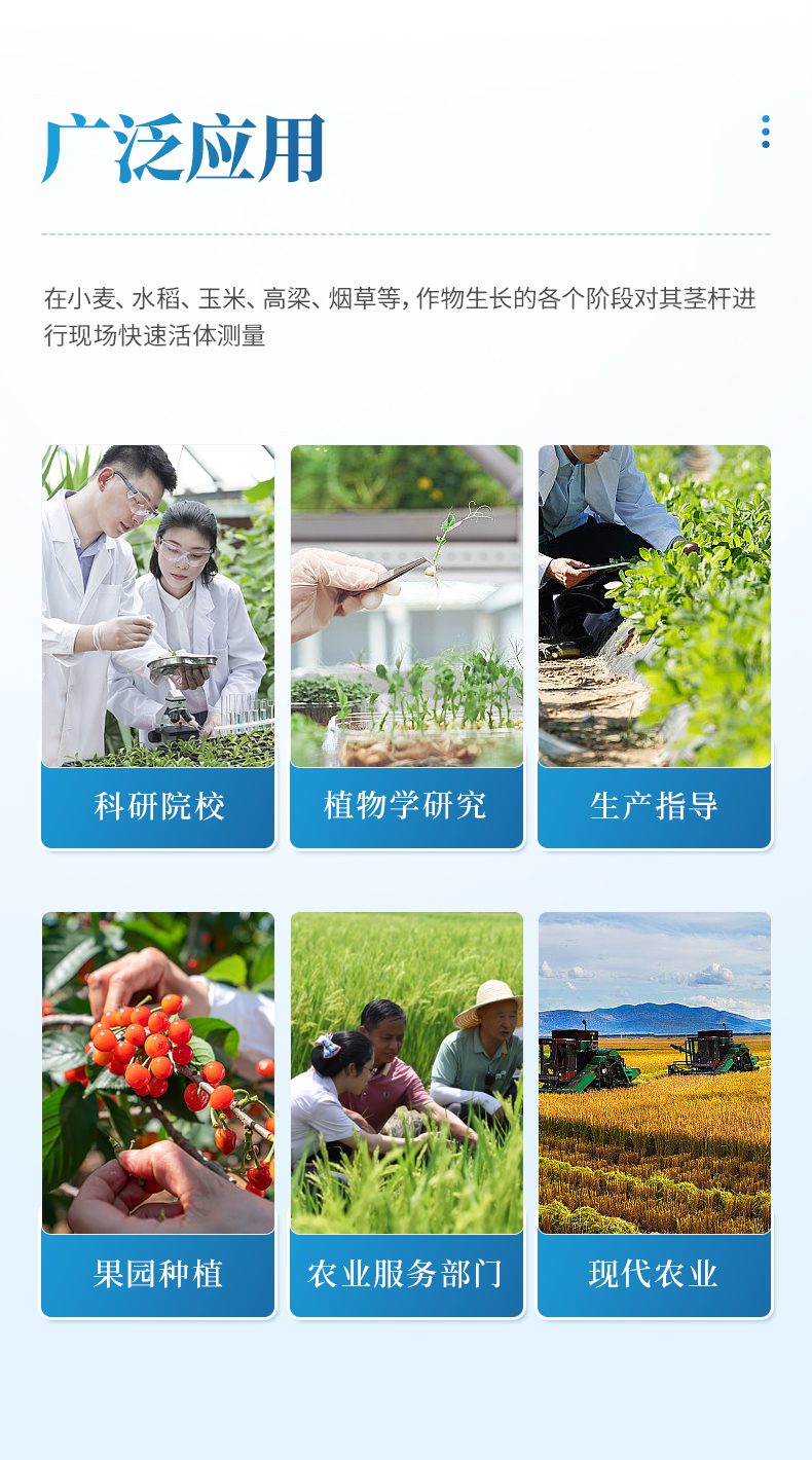 植物抗倒伏测定仪是决定农作物抗倒伏能力的一个关键因素,玉米,高梁、烟草等的植物的倒伏给农作物的机械收割造成很大的困难。造成大量的浪费。另外,农作物的倒伏导致光照不充分,使其生产量受到极大的限制。在作物生长的各个阶段对其茎杆进行活体测量,进而根据茎杆纤维层的抗弯阻力与抗倒伏能力的相关性对群体测量数据进行统计处理,对作物的栽培和育种具有重要意义。