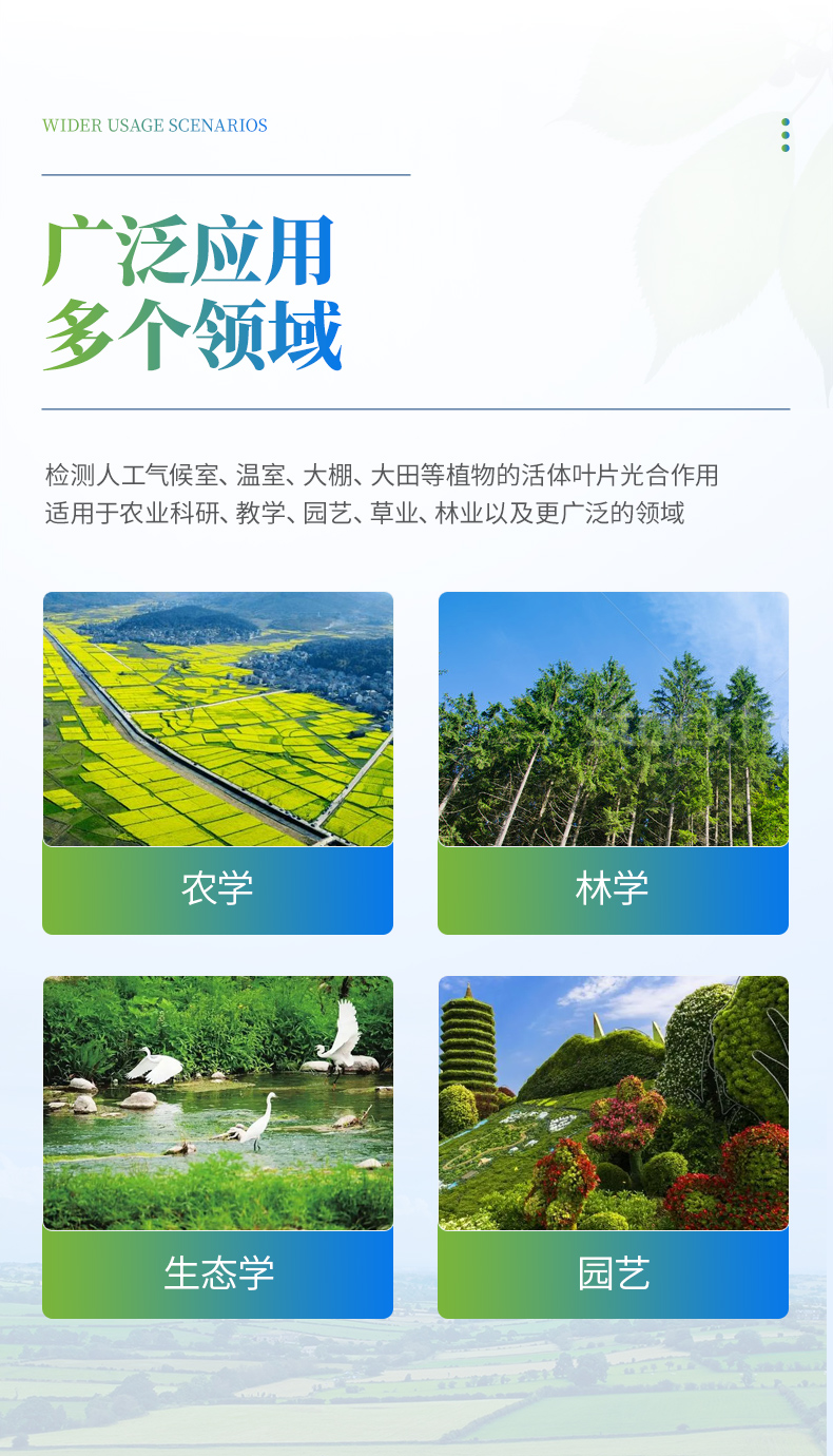 好盈v3适用广泛:配有不同类型的叶室(呼吸反应器)能广泛用于大田作物、果树、蔬菜、森木、牧草等多种植物不同形状叶片的测定和土壤、种子、昆虫等呼吸作用