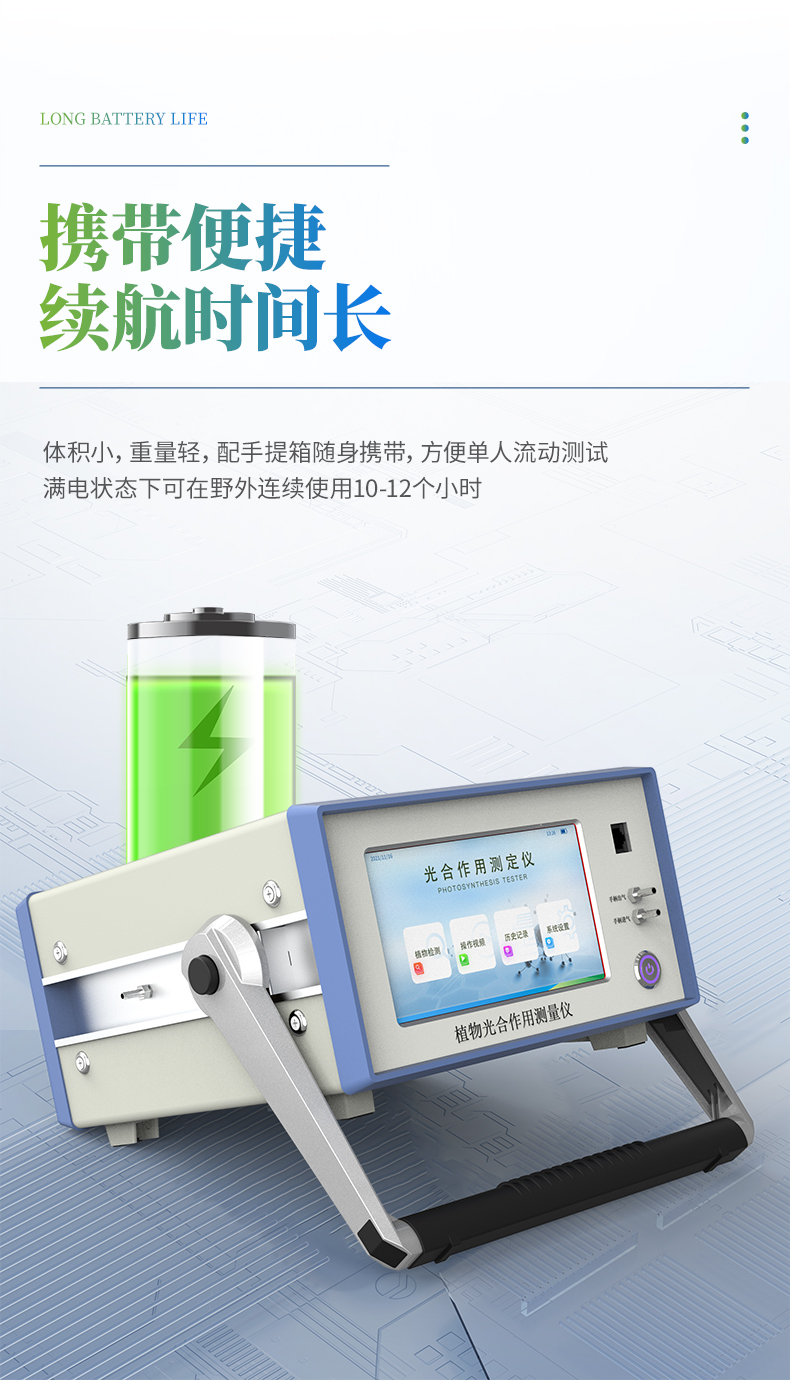 便携式光合测定仪采用闭路测量方法可以测定气体CO2浓度、空气温湿度,植物叶片温度,光强,气体流量等要素,并计算出植物的光合速率、蒸腾速率、细胞间CO2浓度、气孔导度、水分利用率等光合作用指标,在生物、农学、园艺、林业、昆虫、微生物、动物等许多专业的实验课程中有广泛的利用前景.
